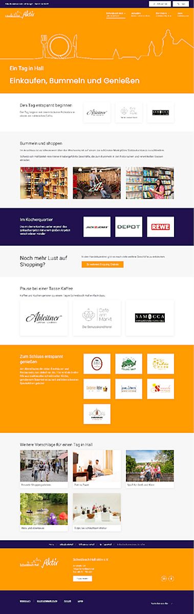 Bildbeschreibung: Im Beispiel wird auf der Webseite des Stadtmarketing-Vereins Schwäbisch Hall Aktiv angezeigt, was man in Schwäbisch Hall unternehmen kann. Die Beispiele sind mit den Profilen der Vereinsmitglieder verknüpft.