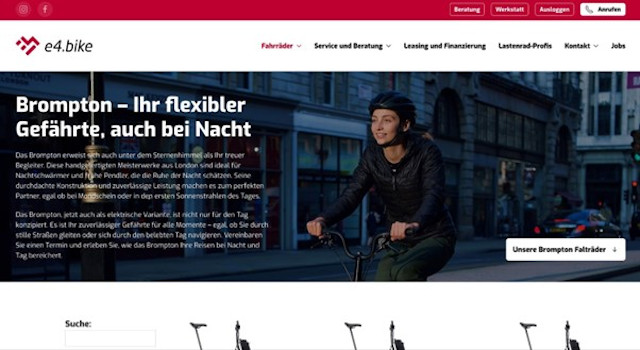 Bildbeschreibung: Das Beispiel zeigt eine Marken-Landingpage eines Fahrradhändlers an – hier werden nicht nur die dazugehörigen Räder zu dieser Marke angezeigt. Der Besucher wird mit der entsprechenden Tageszeit und einem dazu passenden Bild begrüßt.