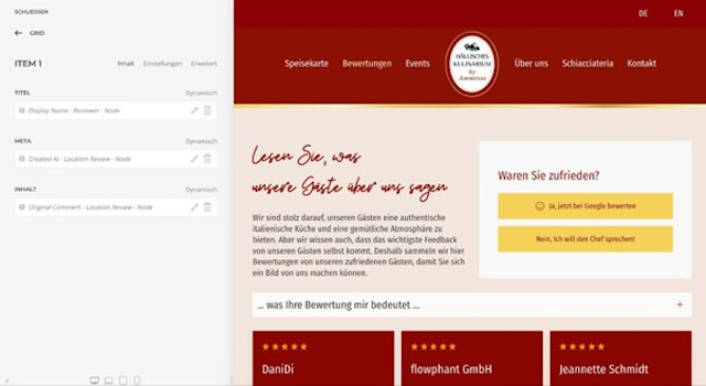 Umsetzungsbeispiel 2 (Screenshot Builder zieht dynamische Quelle aus Google Reviews)