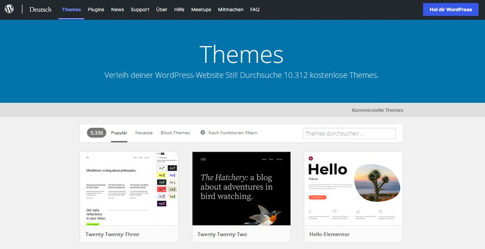 Wer mit der Optik seiner Website unzufrieden war, brauchte einfach nur das Themesverzeichnis von WordPress durchzublättern und aus einer Fülle von Vorschlägen einen neuen Look auszuwählen. Heute, im Jahr 2023, haben sich dort über 10.000 Themes angesammelt.